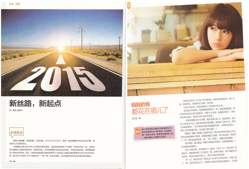 对精选的文本进行解读和分析,揭示文本的主旨、结构和细节,帮助读者理解文本的要义和思想。这样的解读有助于读者发展批判性思维和分析能力,提高对文本的理解深度。注重培养读者的阅读兴趣和习惯。除了精选的文本和策略分享,杂志还会推荐优秀的读物和文学作品,介绍阅读的乐趣和益处。通过多样化的内容和选题,杂志希望激发读者的阅读兴趣,培养他们的阅读习惯,提升整体的阅读水平。