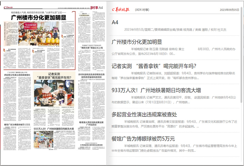 《羊城晚报》涵盖了政治、经济、文化、教育、科技、社会、体育等多个领域的新闻报道。该报通过深度报道和专题研究,关注广东省内的重大事件、重要工作和政策动态。同时,也关注国内外的重要新闻,为读者提供全球视野下的信息。《羊城晚报》在新闻内容的呈现上注重品质和深度。该报不仅报道热点新闻,还关注社会热点问题,并邀请权威专家、学者进行深度解读。在时评、评论和人物专栏等方面,《羊城晚报》也有着丰富多样的内容呈现,为读者提供思想性、观点性的信息。